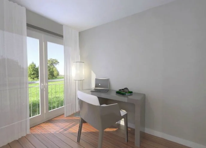 Die Stadtvilla mit Erker Annika bietet eine Aufteilung, die besonders großzügige Räume mit vielen Fenstern ermöglicht. Durch die Diele gelangen die Bewohner in den durch Flügeltüren zu erreichenden Wohn- und Essbereich. Zahlreiche bodentiefe Fenster und Glastüren sorgen hier für viel Tageslicht und die Möglichkeit, direkt in den angeschlossenen Garten zu gelangen. Noch offener wirkt die Atmosphäre durch den fließenden Übergang zur Küche. Ein zusätzliches Arbeits- oder Gästezimmer und ein kompaktes Gäste-WC komplettieren die Räumlichkeiten des Erdgeschosses.