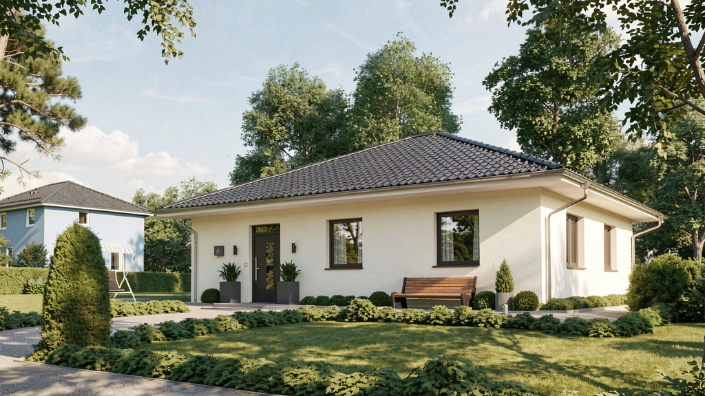 Im Bungalow Carla fühlen sich Senioren schnell wohl. Durch gerade Linien zeichnet sich die Bauweise aus – und erleichtert den Alltag durch volle Barrierefreiheit.