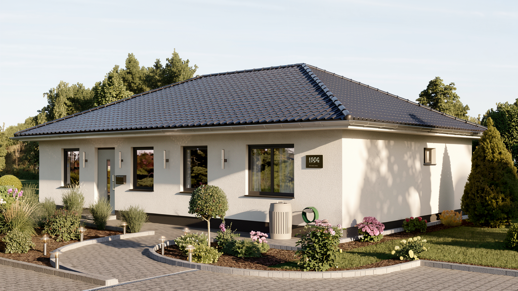 Mit dem Bungalow Christina bauen Sie einen anspruchsvollen Wohntraum, ganz ohne Treppensteigen und Sturzgefahr. Eine ganze Familie findet hier ihren privaten Rückzugsraum. Zudem planen Sie mit der eingeschossigen Bauweise von diesem Massivhaus klug in die Zukunft. Denn das Steigen von Treppen ist im Alter nicht nur beschwerlich, es ist auch gefährlich. Ein großer Dachboden und ein optionaler Keller machen Christina zudem zum wahren Flächenwunder.