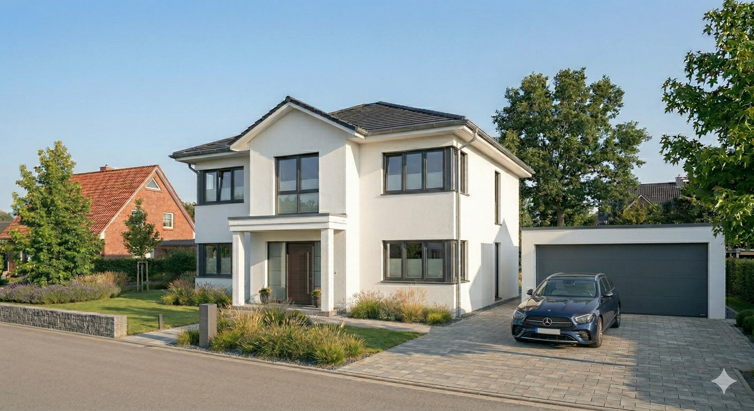 Wichtiger Hinweis: Wir prüfen im Rahmen der Entwurfsplanung die Genehmigungsfähigkeit auf Ihrem Grundstück, wenn Sie ein Massivhaus mit Garage bauen möchten.